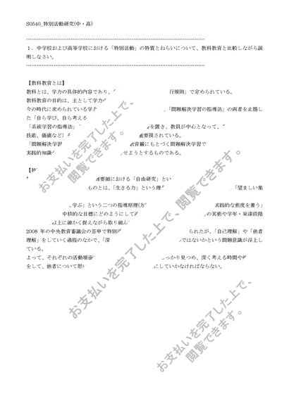 【佛教大学】【2012年度科目最終試験対策】S0540_特別活動研究(中・高)