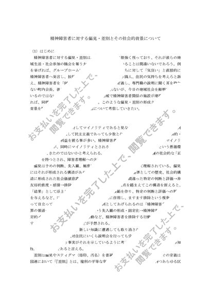精神障害者に対する偏見・差別とその社会的背景について