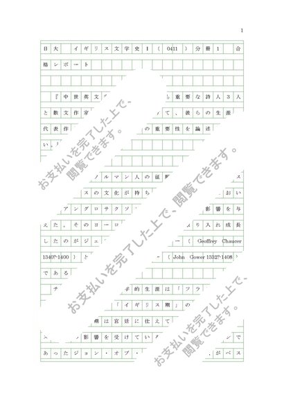 日大 イギリス文学史Ⅰ(0411)分冊1 合格レポート