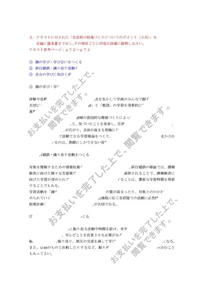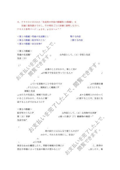 佛教大学 S0169 生活科教育法 2012・2013年度版!お得な出題履歴付き!合格済♪科目最終試験テスト6設題セット!模範解答