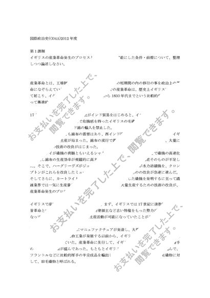 中央大学 合格レポート 2012年度 国際政治史 第1課題