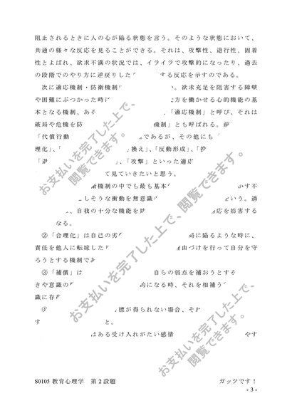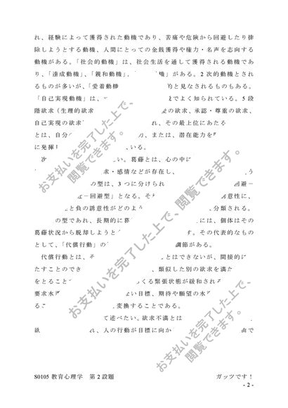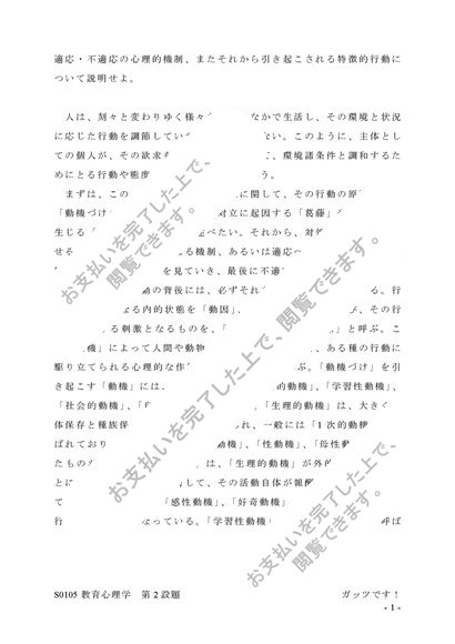 【A判定】 S0105 教育心理学 第2設題