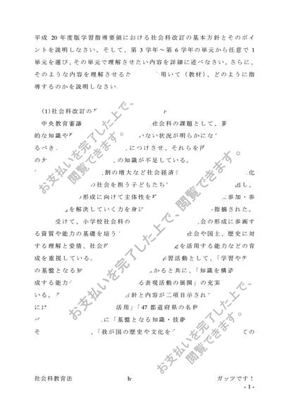 【A判定】 S0617 社会科教育法 第1設題