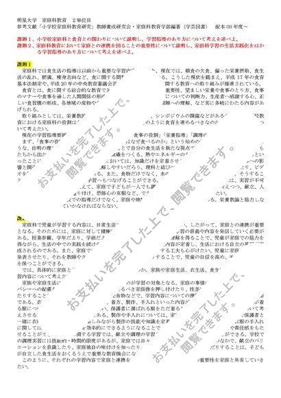【家庭科教育】 2単位目 明星大学 合格レポート
