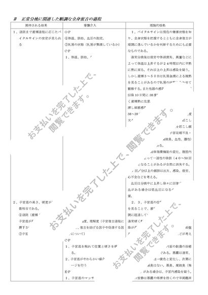 【母性看護】正常分娩の全身復古 等 看護計画ケアプラン