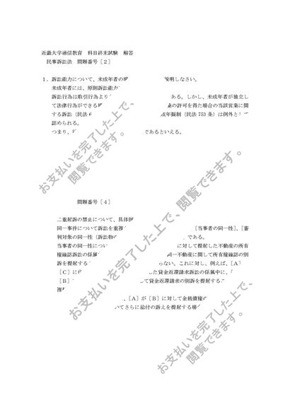近畿大学通信教育科目終末試験解答 民事訴訟法[偶数番号]