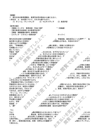 【2012】【明星大学】【中等教育方法学】合格レポート(1単位目)※2015年度も同一課題