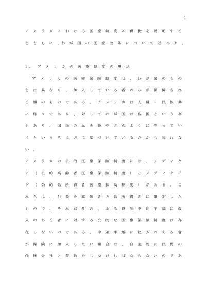 アメリカにおける医療制度の現状を説明するとともに、わが国の医療改革について述べよ。