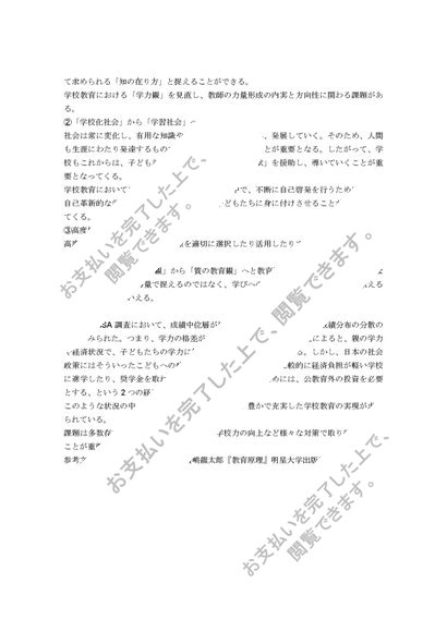 『明星大学通信教育部』PA1020 教育原理2単位目 合格レポート