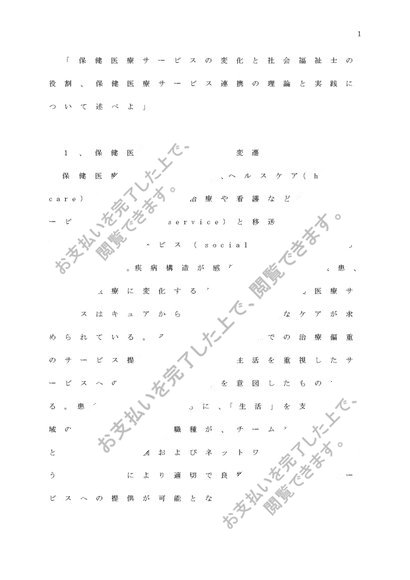 保健医療 B+判定「保健医療サービスの変化と社会福祉士の役割、保健医療サービス連携の理論と実践について述べよ」ぷらす科目終