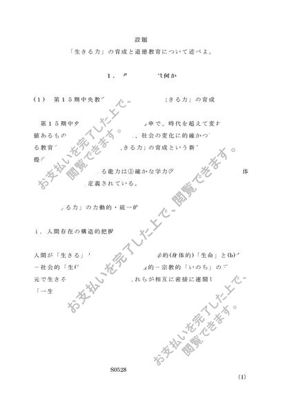 佛教大学 S0528 道徳教育の研究 レポート 第1設題 2012・2013年度版 合格済 A判定