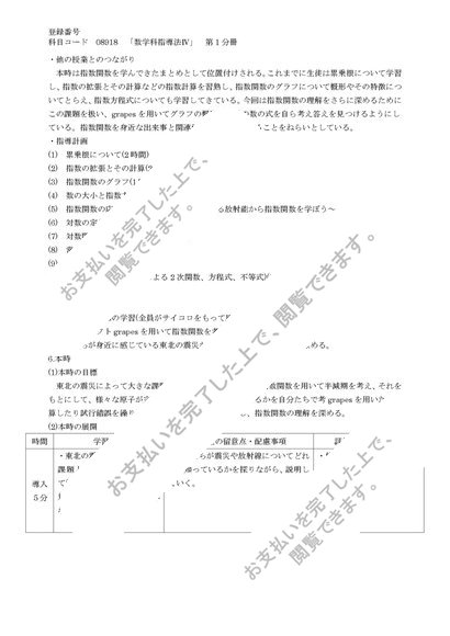 数学科指導法Ⅳ 1分冊 高等学校数学科学習指導案