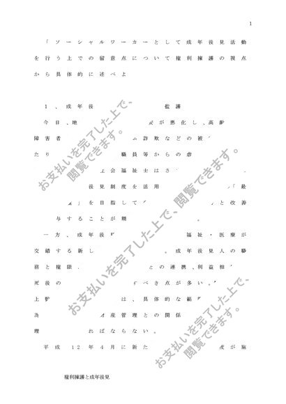 権利擁護と成年後見 A判定「ソーシャルワーカーとして成年後見活動を行う上での留意点について権利擁護の視点から具体的に述べよ」ぷらす科目終