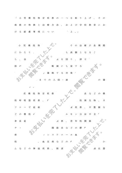 小児慢性特定疾患の一つを取り上げ、その病態の特徴と治療方法、および学校教育における配慮事項について述べよ