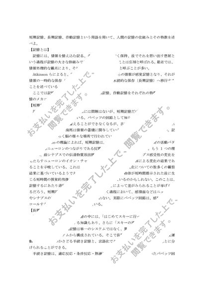 短期記憶、長期記憶、作動記憶という用語を用いて、人間の記憶の仕組みとその特徴を述べよ。