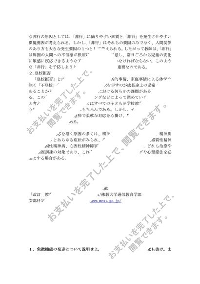 S0105教育心理学 レポート1&2設題+科目最終試験問題セット2012年度 評価A