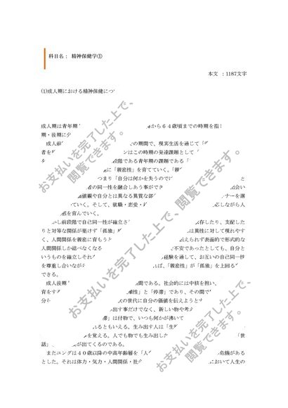 精神保健学①(成人期における精神保健について、その特徴を述べよ)