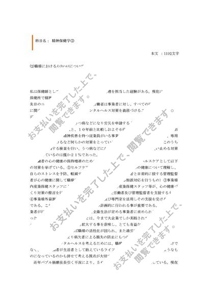 精神保健学②(職場におけるメンタルヘルスについて、あなたの考えを述べよ)