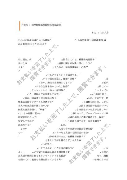 精神保健福祉援助技術各論①(クライエントの居住地域における精神保健福祉士の役割について、具体的事例(テキスト掲載事例、身近な事例可)をもとに、あなたの考えを述べなさい)