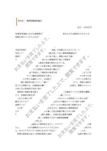 精神保健福祉論①(障害者福祉における地域移行支援において精神保健福祉士などの支援者がどのような役割を果たすべきか、あなたの考えを述べなさい)