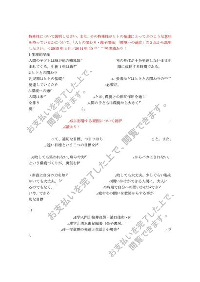 ■【2016-12】【明星大学】【児童心理学】過去問と回答例 ※2016年4月の試験でも出題済!