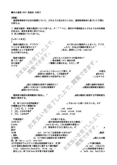 【日大通信】0441 英語史 分冊2 合格レポート