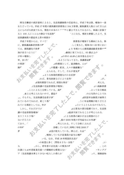 生活保護の受給率上昇の原因について考察しなさい。(A判定・2009文字)