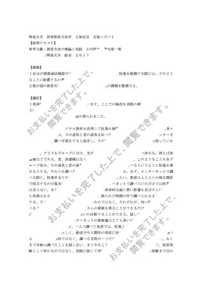 初等教育方法学② 明星大学 合格レポート 2単位目 2013