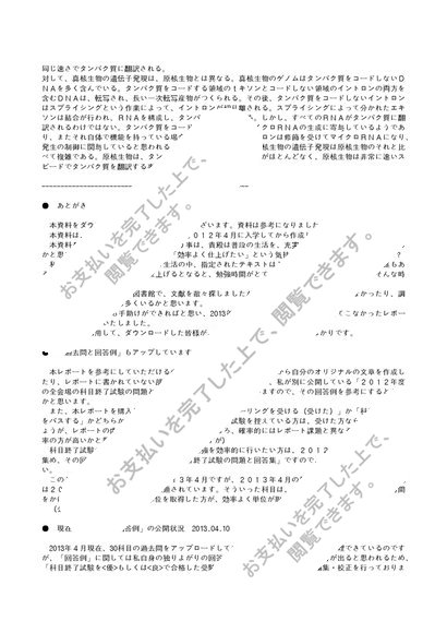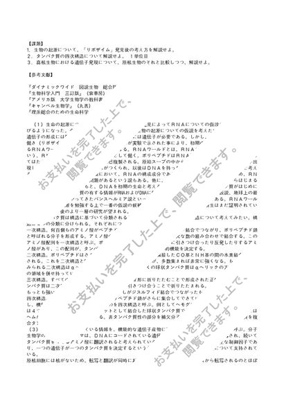 【2012】【明星大学】【生物学概論1】合格レポート(1単位目)