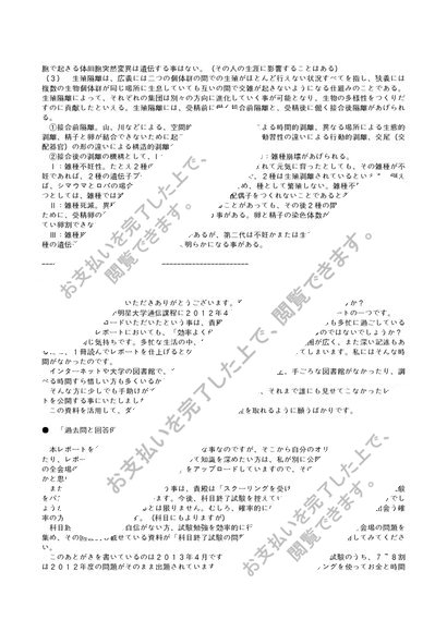 【2012】【明星大学】【生物学概論1】合格レポート(2単位目)