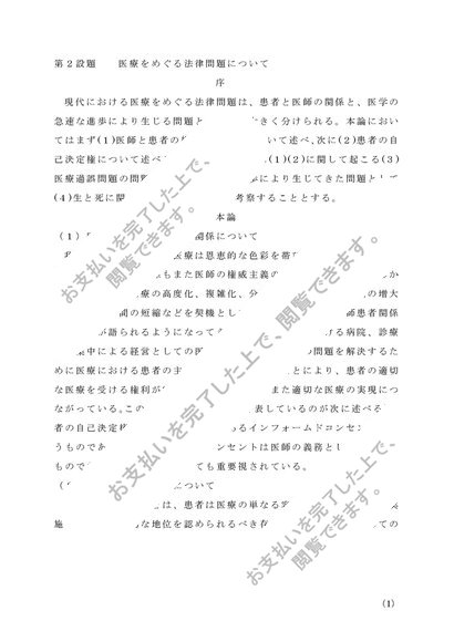R0711 法律学概論 第2設題 医療をめぐる法律問題について(A評価)