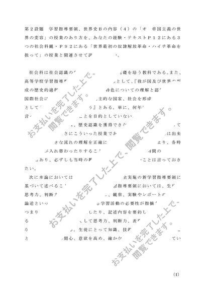 Z1305 教科教育法地理歴史 第2設題(A評価)