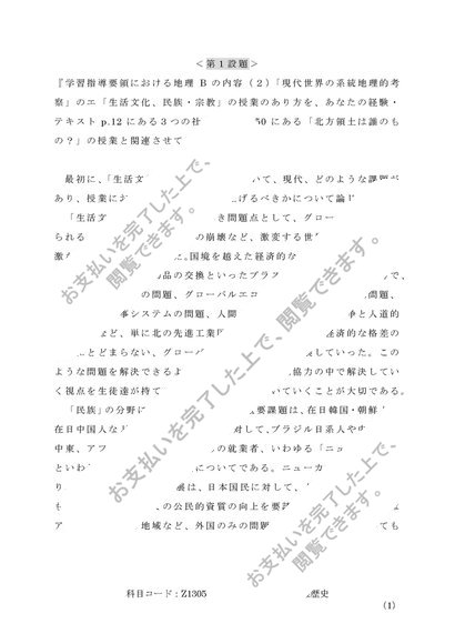 Z1305 教科教育法地理歴史 第1、第2設題セット販売(B評価)