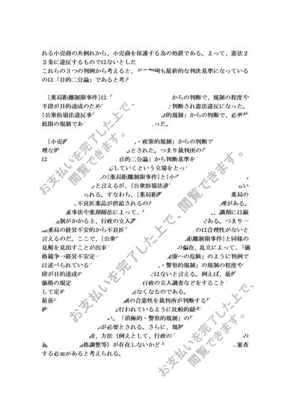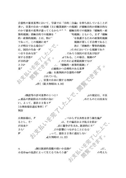 営業の自由に対する規制とその合憲性の審査を考察する
