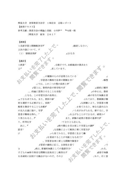 初等教育方法学①② 明星大学 2013 合格レポート 2単位分