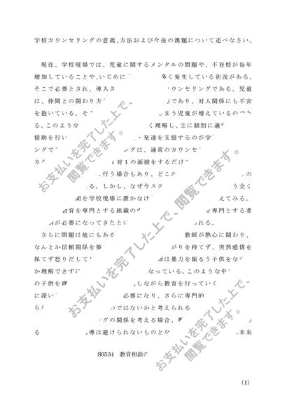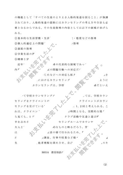 『佛教大学レポート』 通信 S0534 教育相談の研究 リポート 評価A 2013 2015 2016