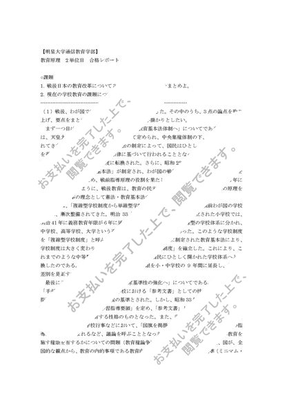 【教育原理】 2単位目 合格レポート 明星大学通信