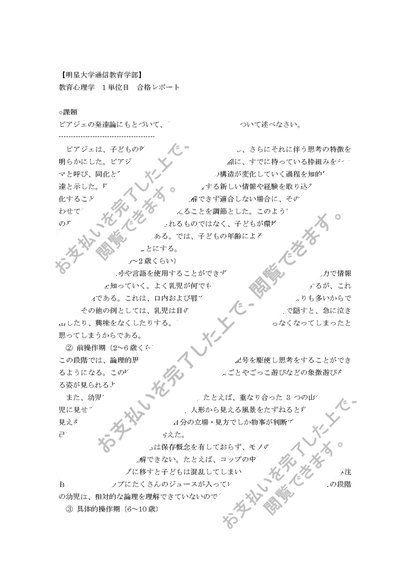【教育心理学】 1単位目 合格レポート 明星大学通信