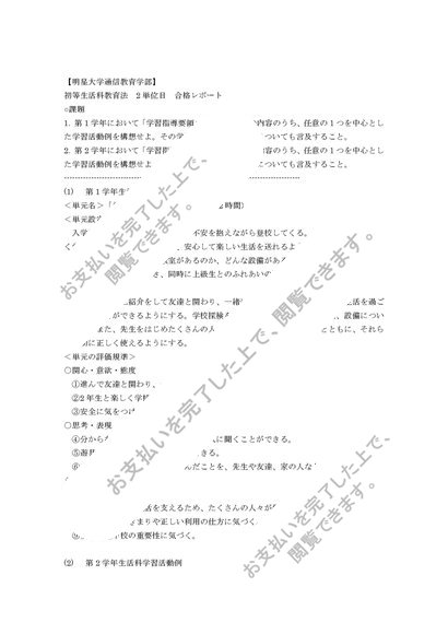 759【初等生活科教育法】 2単位目 合格レポート 明星大学通信