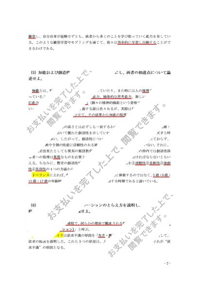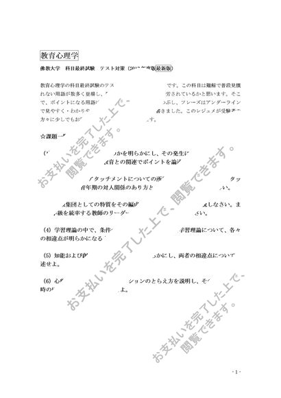 教育心理学 科目最終試験対策全6題(2013年5月以降)(by立命館大卒)