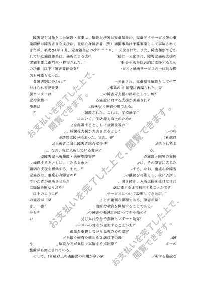 改正された障害児を対象とした福祉サービスの概要と今後の課題について述べなさい。(A判定・1732文字)