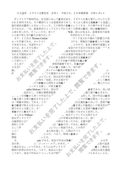 日大通信 イギリス文学史Ⅱ 分冊1 合格レポート A評価