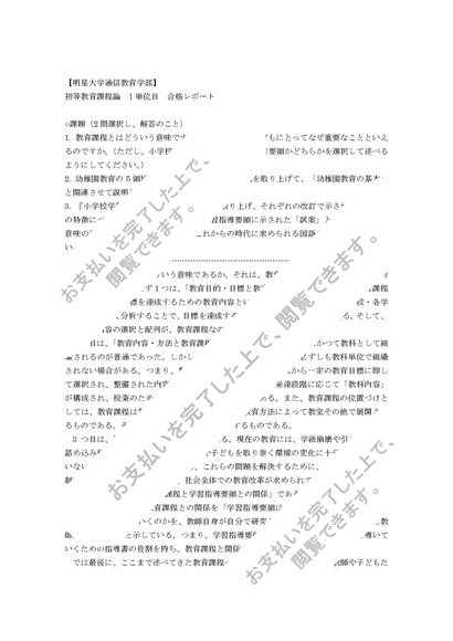 【初等教育課程論】 1単位目 合格レポート 明星大学通信