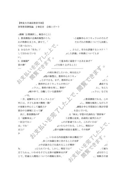 【初等教育課程論】 2単位目 合格レポート 明星大学通信