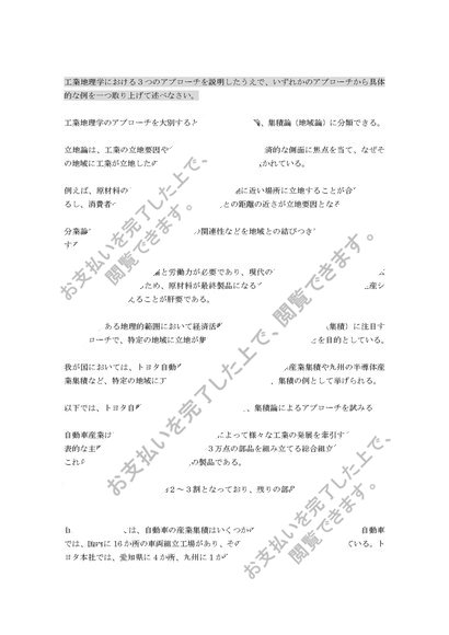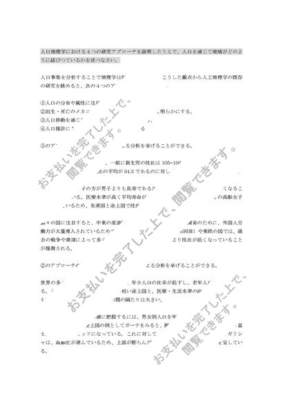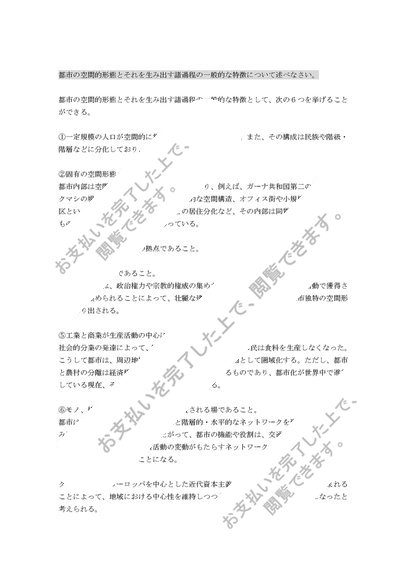 Q0702_R0708_人文地理学(科目最終試験6題の解答例:80点合格)