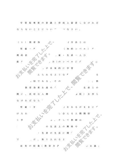 教育方法論(初等教育) 学習指導案の意識と作成上留意しなければならないことについて述べなさい