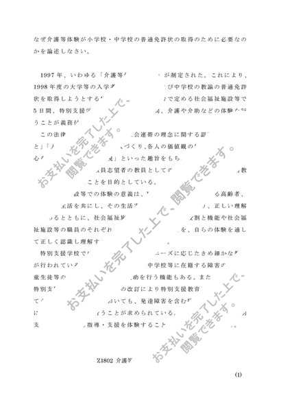 Z1802 介護等体験研究 第1設題 合格リポート(A判定)
