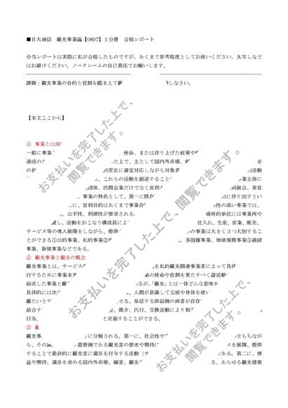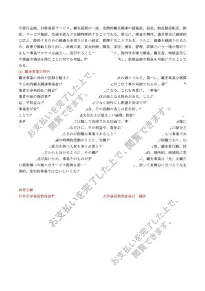 日大通信 観光事業論【0897】1分冊 合格レポート
