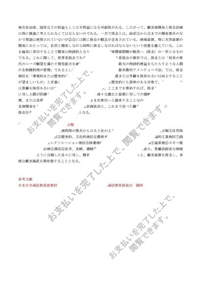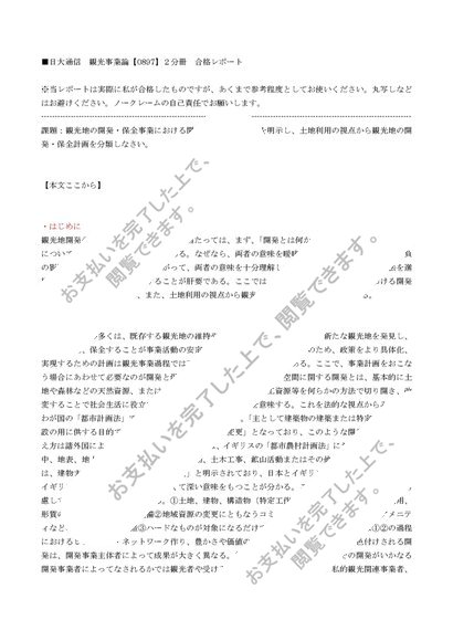 日大通信 観光事業論【0897】2分冊 合格レポート