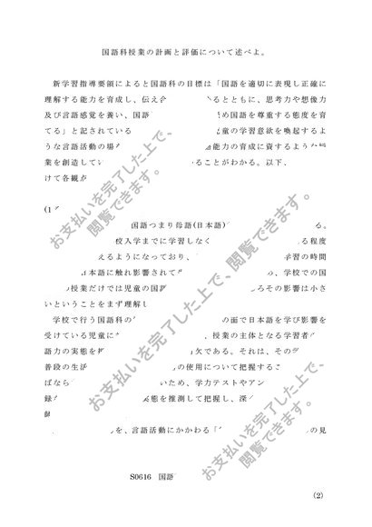 佛教大学 S0616国語科教育法 第一設題